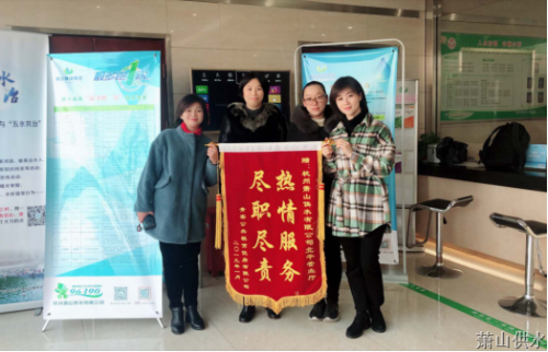 “热情效劳,尽职尽责”。新年伊始,上海青客公共租赁住房有限公司事情人员将一面锦旗送到萧山供水公司北干营业所。