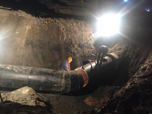 污水抽排、原管拆除、沟槽开挖、新旧管道连接等20余小时不间断作业,于16日下午5时许完成迁改,比原计划提前5小时具备通水条件。